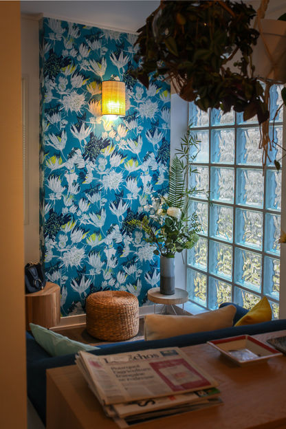 Naturel, scandicraft, vert d'eau, frais et chaleureux, touches ethniques, végétaux, tropical, légèreté, bois, papier peint, lumineux, recherche mobilier et décoration, aménagement